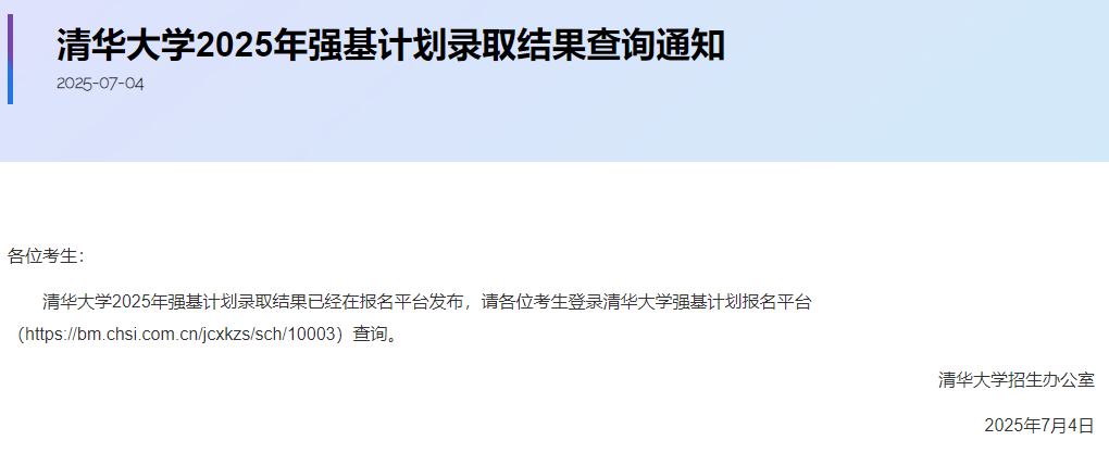 温馨提示:强基计划录取考生的录取通知书预计将于7月中下旬随各省其他类别通知书一起邮寄,请保持联系方式畅通。