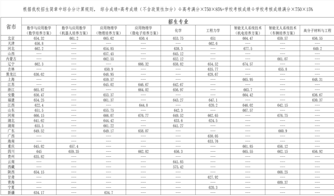 我校已完成2025年强基计划学校考核工作,根据教育部和我校招生简章要求,现将各省份录取*低综合*公布如下:
