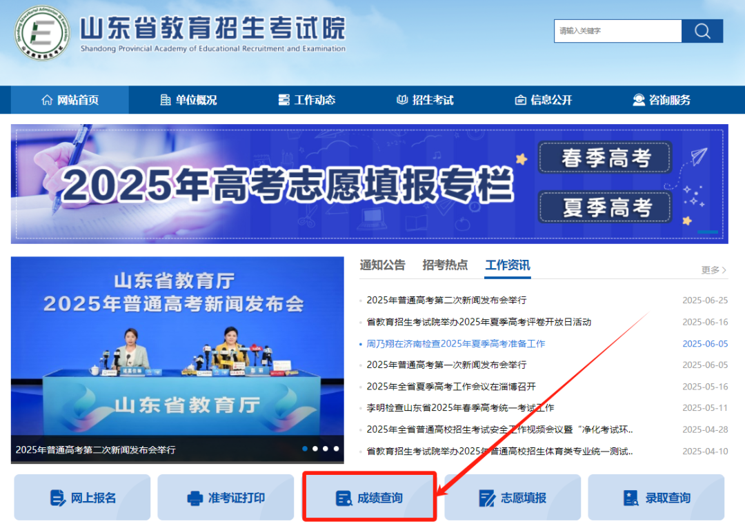 考生可登录山东省教育招生考试院*查询系统,在规定时间内查询当次考试*。查询步骤如下: