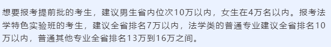 文史类专业(选考科目为不限)18万位次(504分)以上考生鼓励报考;19万位次(499分)以上考生鼓励冲一冲。
