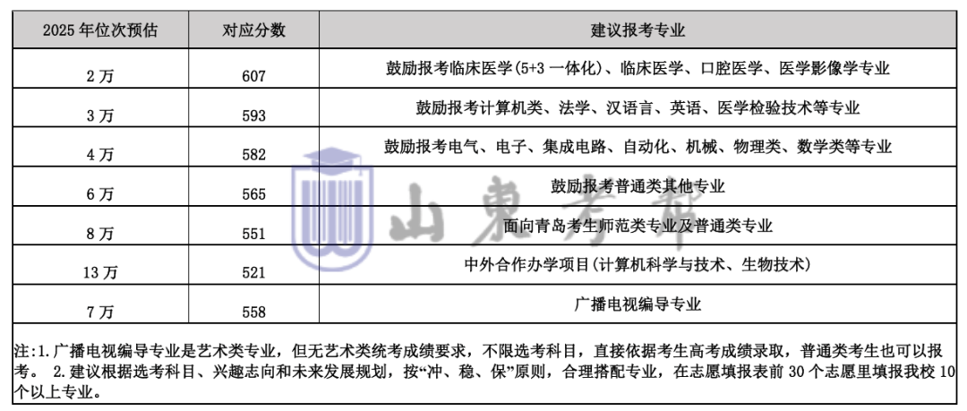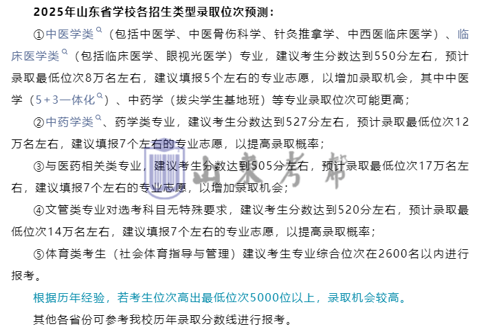 2025年山东第一医科大学各专业报考建议位次如下——
