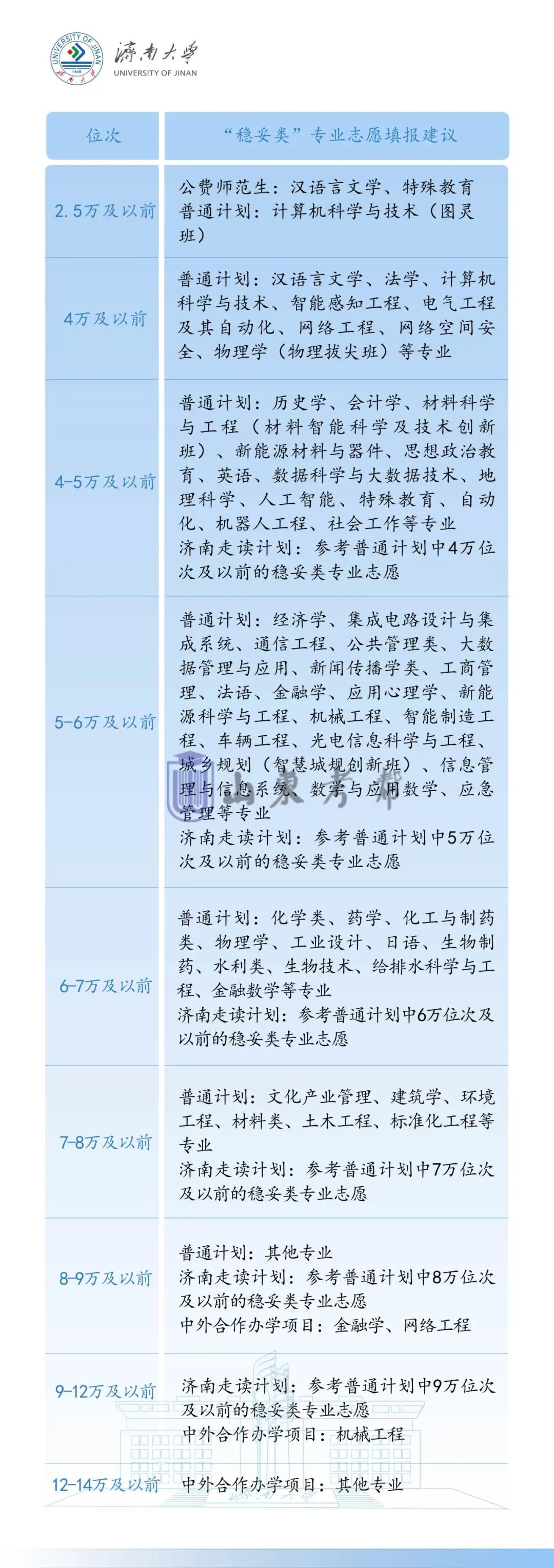 3、位次【16万名】以内考生,建议报考我校临沂校区机械电子工程、机械工程、交通运输、统计学、物流管理、工程审计专业;4、位次【20万名】以内考生,建议报考我校临沂校区其他专业。