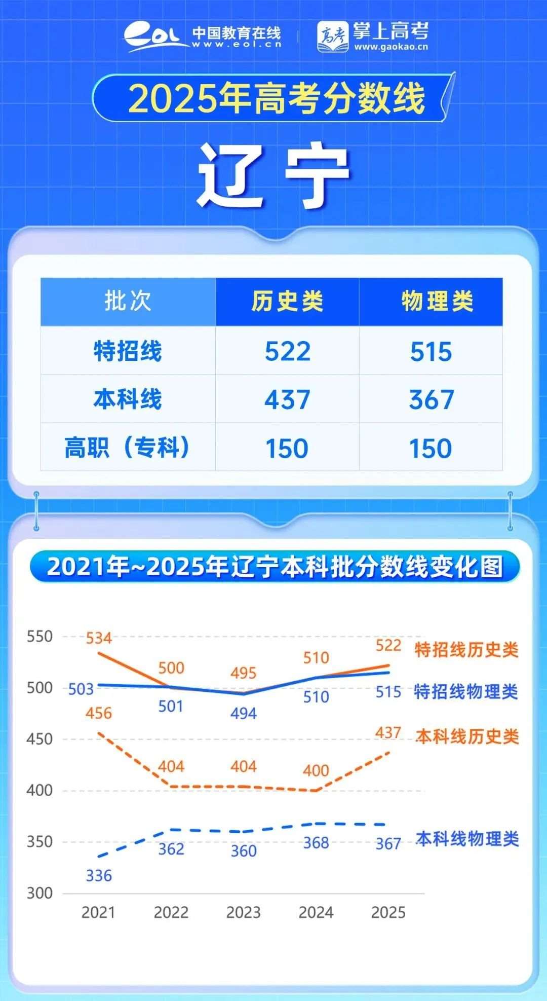 2025年辽宁高考历史类分数线上涨,特招线历史类522分,上涨12分,本科线437分,上涨37分;,上涨5分,本科线367分,下降1分