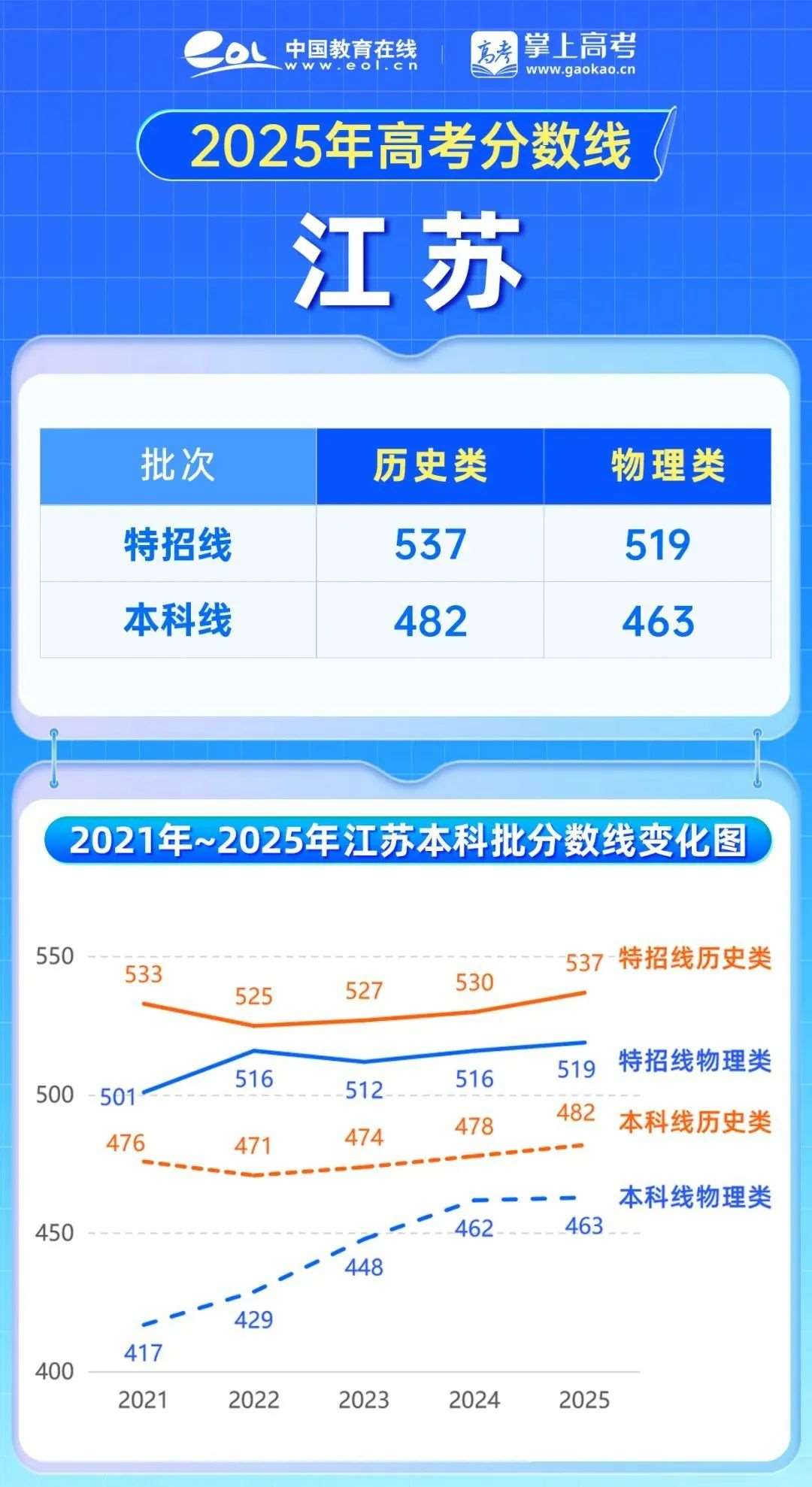 2025年江苏高考历史类特招线537分,上涨7分,本科线482分,上涨4分物理类特招线519分,上涨3分,本科线463分,上涨1分