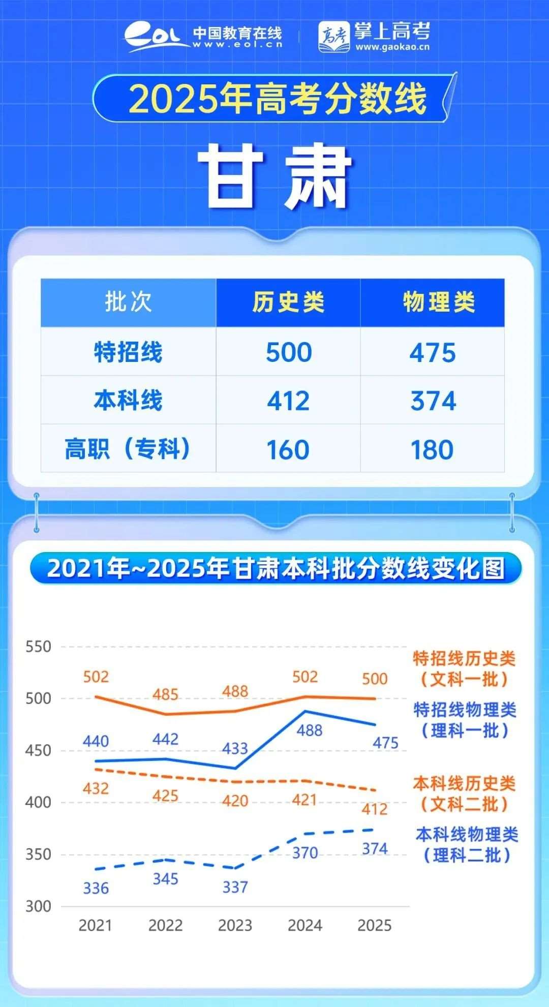 本科线之外,甘肃2025年本科批分数线较2024年均下降。特招线,本科线;特招线