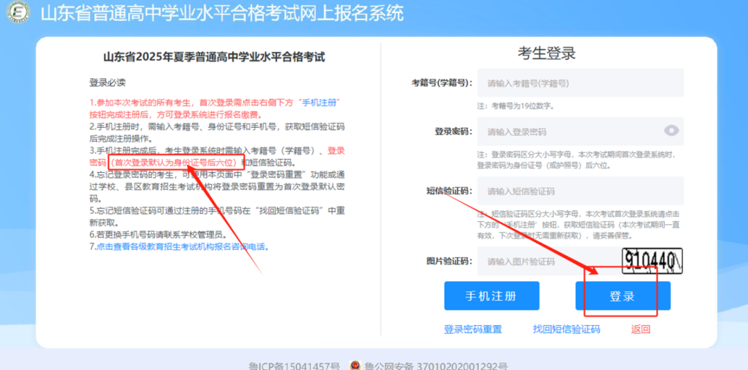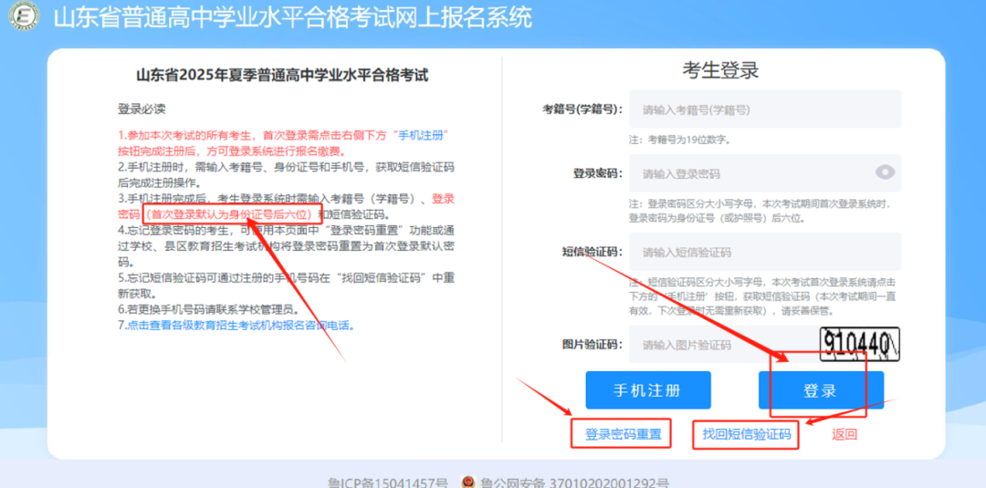 注意:短信验证码会发送到填写的常用手机号上,考生/家长返回登陆页面后,使用这个短信验证码进行登录。