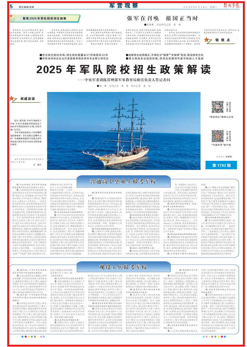 近日,教育部、中央军委政治工作部、中央军委训练管理部发布了2025年军队院校招生计划,引发军地广泛关注。