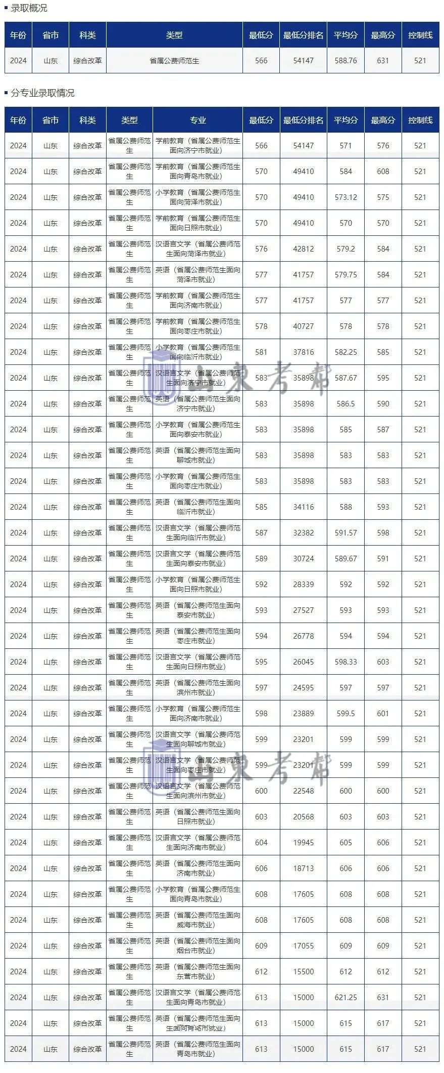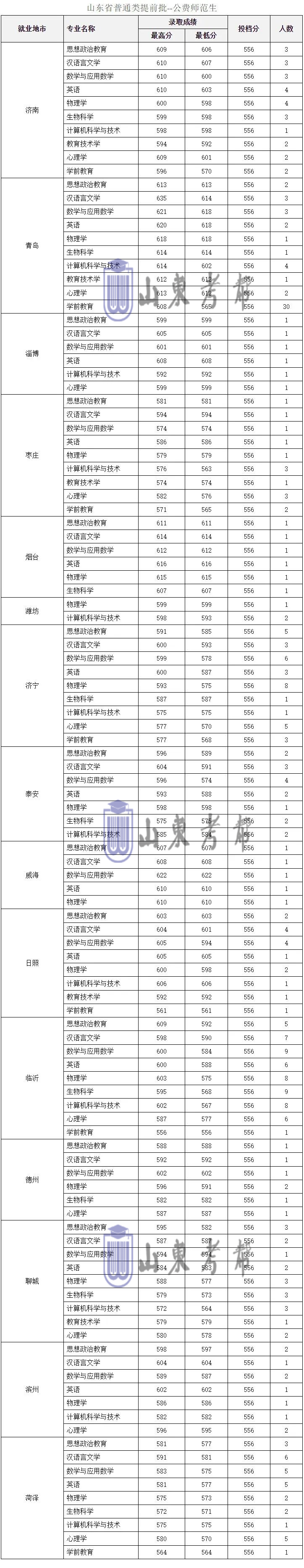 山东省省属公费师范生计划81人,按照招生计划1:3投档,录取81人。