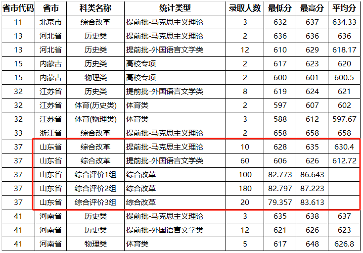山东省综合评价2组:*低分82.797。