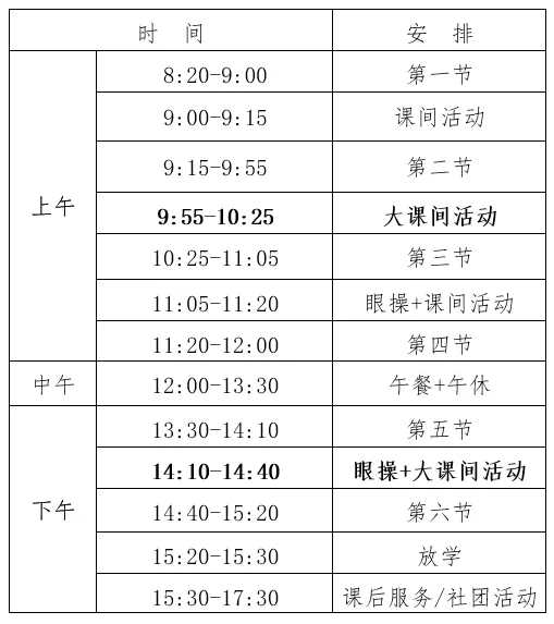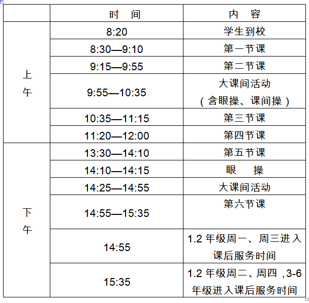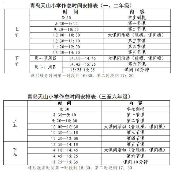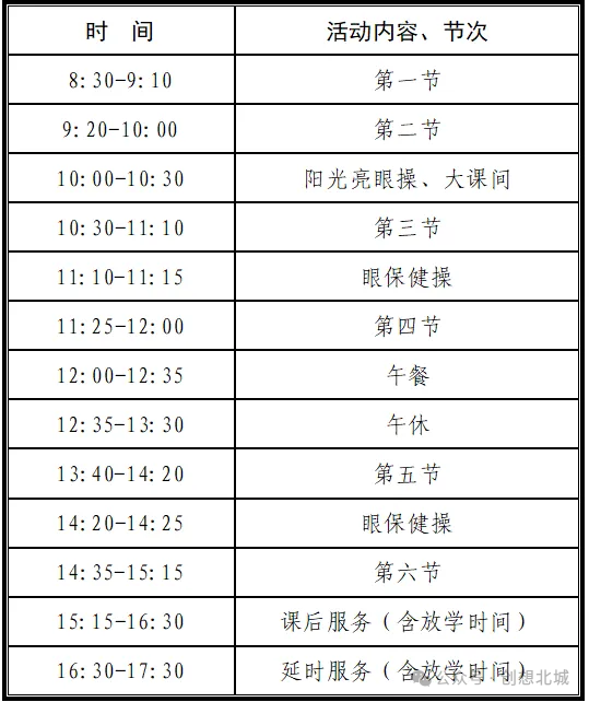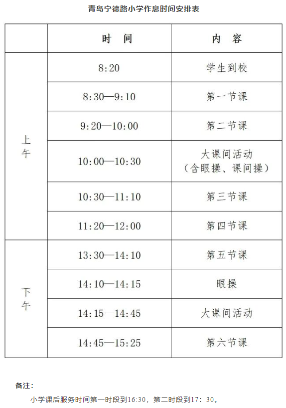备注:小学课后服务时间第*时段到16:30,第二时段到17:30。