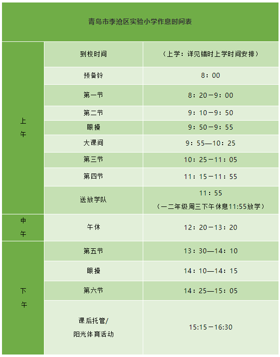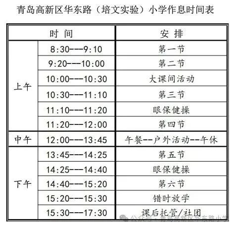 2025年青岛市各区公办小学作息时间,托管情况汇总!