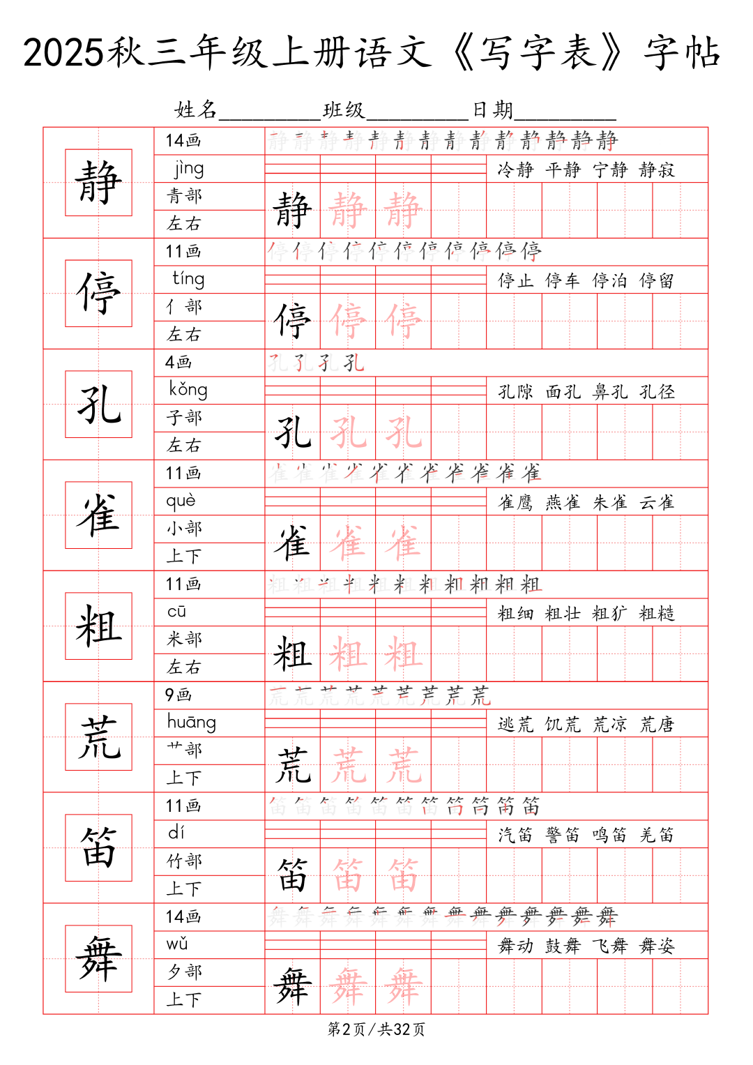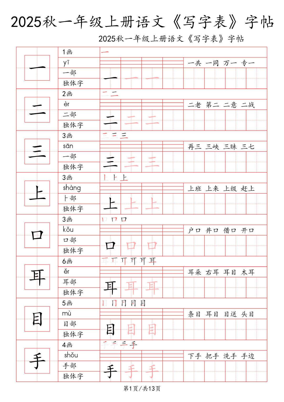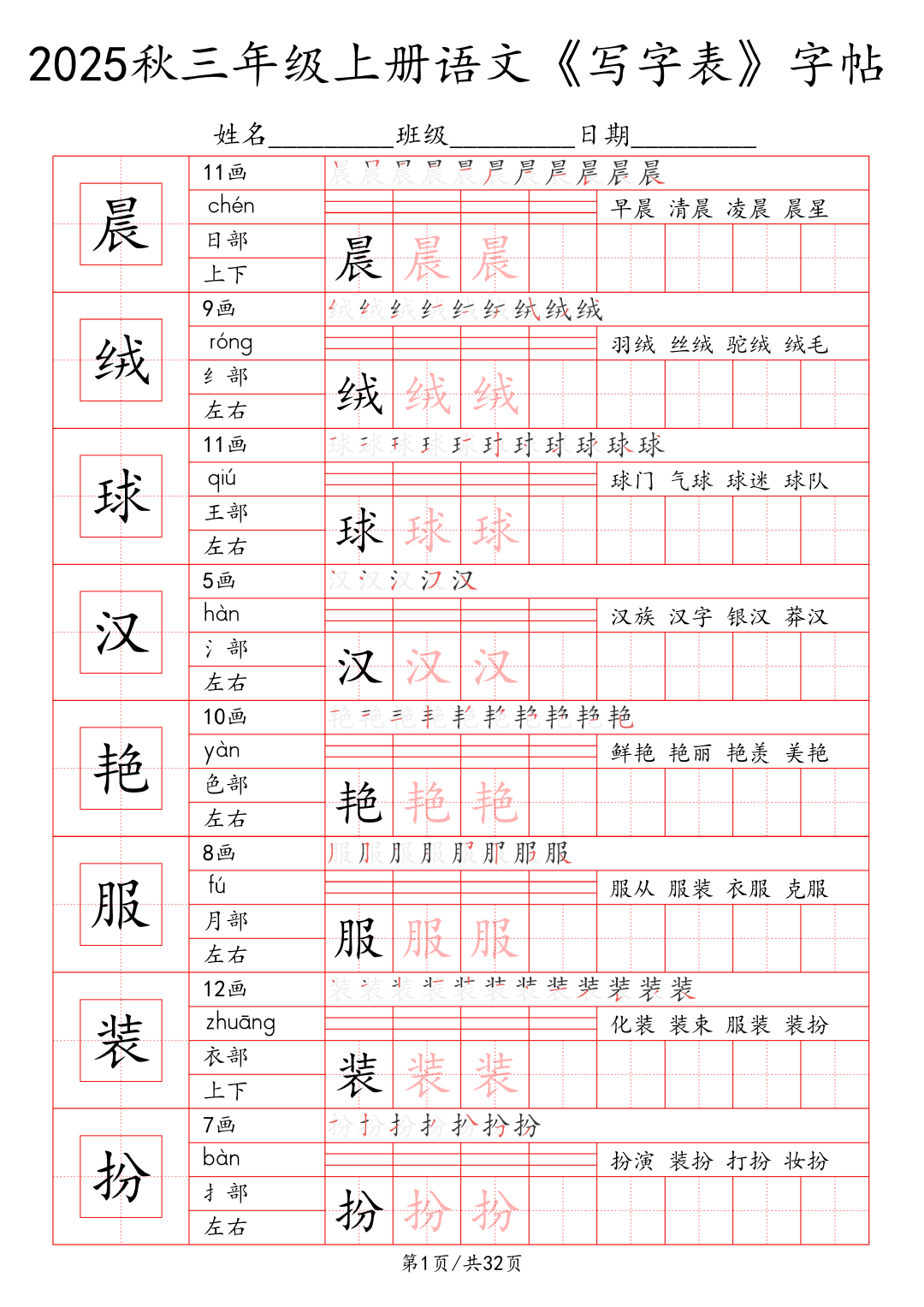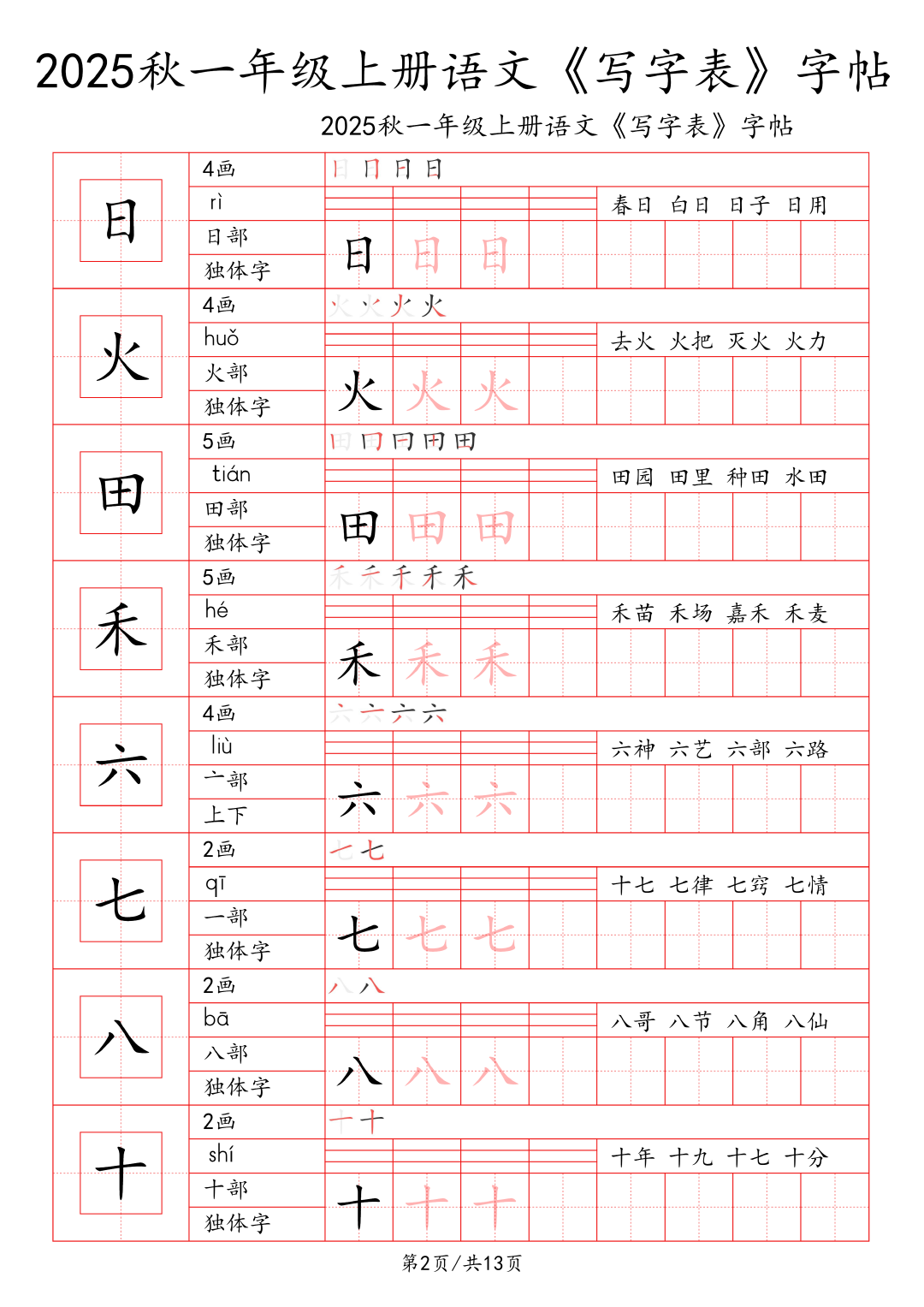 25年秋季学期最新版小学1~6年级语文写字表字帖!
