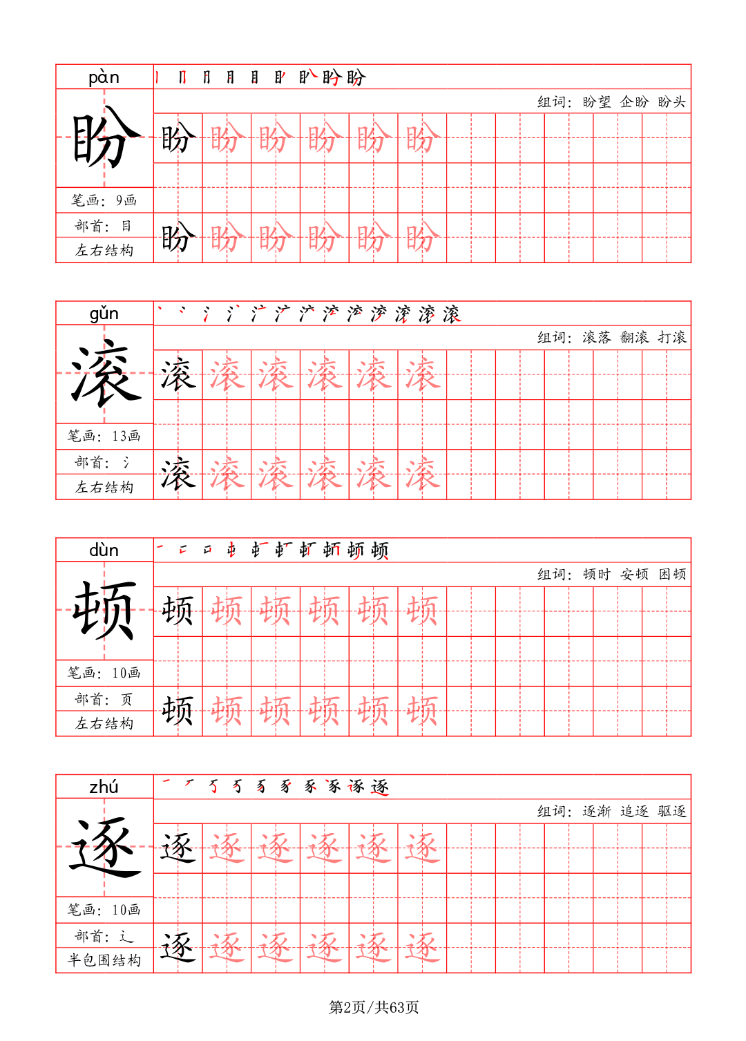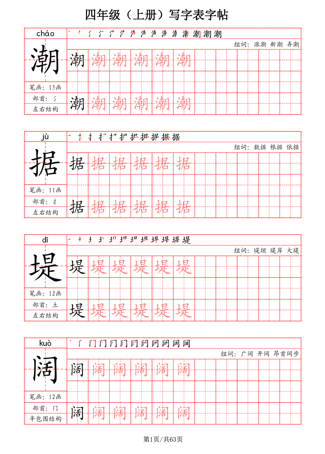 小学1~6年级语文写字表字帖领取