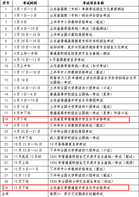 在年初时候,山东省教育招生考试院发布了《2025年山东省教育考试时间安排表》,其中包含了冬季合格考的时间。