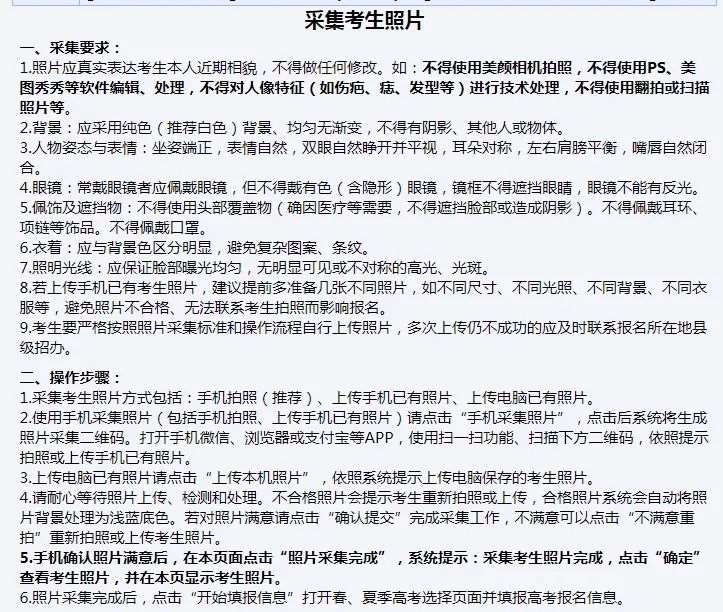 9.因不按上述要求采集照片,影响高考考试、招生录取,后果由考生自负。