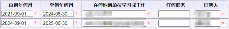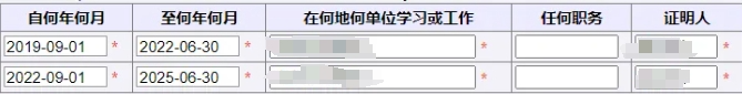 非应届毕业生填写高中段学习经历和工作经历(或复读经历)。