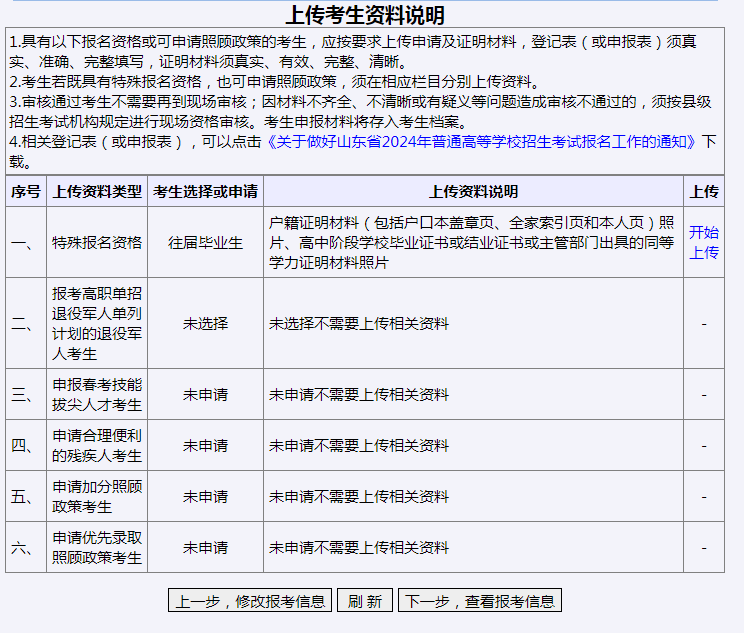 2025年全新增加:为辅助各市县审核以户籍地报考的考生情况,除了往届生(复读生)需要上传户口本外,2025年高考报名新增了外省户籍考生且学籍在山东省的需上传本人户籍证明材料(包括户口本盖章页、全家索引页和本人页)。对于部分省份没有索引页的情况请在高考报名时提前向报名区县说明情况。