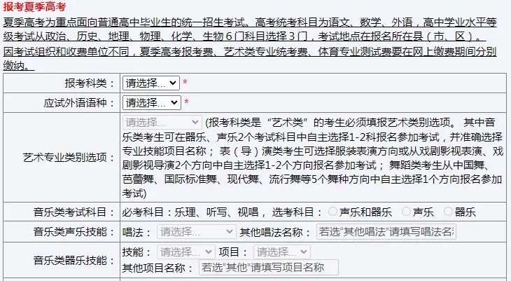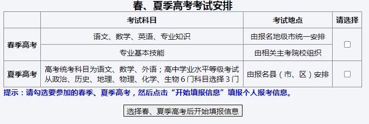 若考生报考了夏季高考,其夏季高考部分信息如下图: