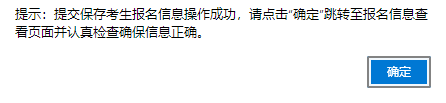 若考生已经选择具有特殊报名资格或申请录取照顾政策,提交保存报名信息成功后会提示:请点击“确定”跳转至考生资料上传页面、按要求上传申报及证明材料,如下图: