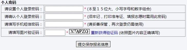 再次填写之前的手机短信密码,填写验证码提交保存报名信息即可。