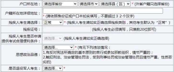 户口所在地详细地址:按照户口本或者身份证的如实填写即可。如果是外省户籍只选择省份即可