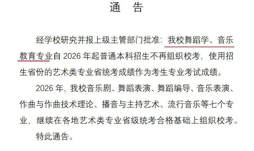南京艺术学院:取消舞蹈学、音乐教育专业校考;