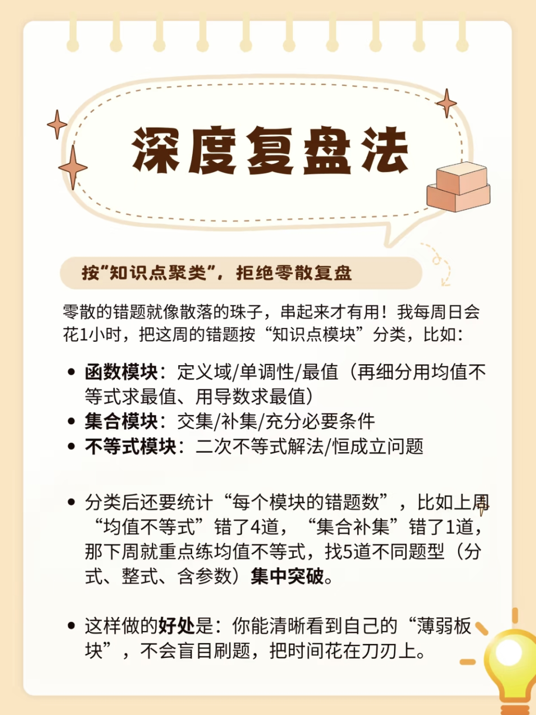 数据只是表象,真正的复盘要找到“为什么错”,把问题追溯到日常学习的具体环节,避免下次重蹈覆辙。