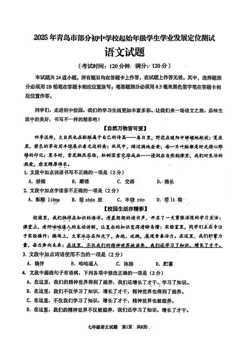 今天,全市一百多所学校进行了初一定位考,青岛中小学期中考试周正式拉开帷幕!