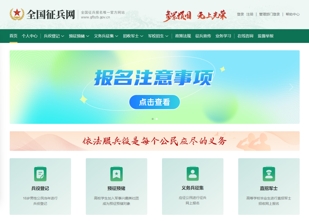 登录全国征兵网www.gfbzb.gov.cn