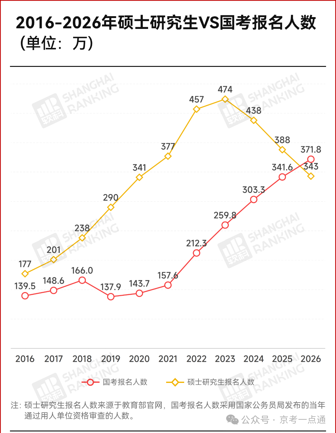 国考报名人数10年反超考研人数