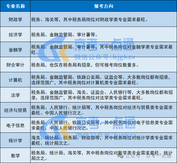 岗位优势:税务系统为招录主力,财政、审计部门需求稳定。