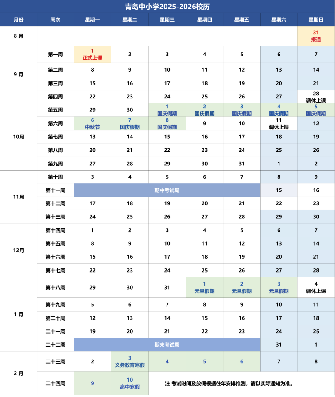 市北区已有初中学校通知:今年的期末考试时间为1月26-28日。