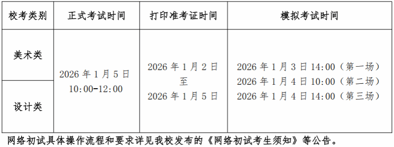2.校考分网络初试和现场复试两个阶段,初试*达到合格要求的考生方可参加复试。初试*不计入复试,我校以复试*(以下称校考*)作为最终校考专业考试*和录取依据。