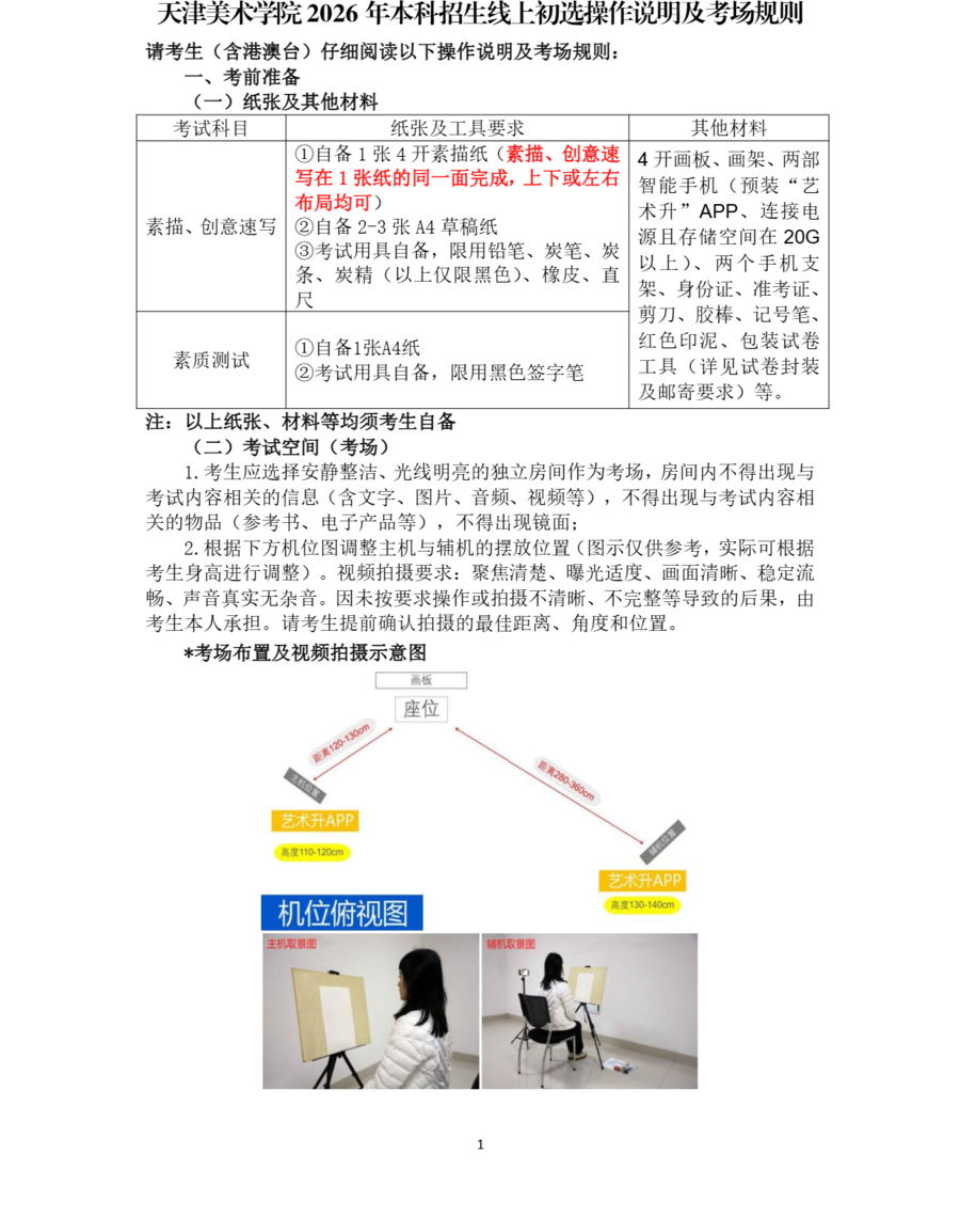 校考资讯 | 2026天津美术学院本科招生线上初选操作说明及考场规则