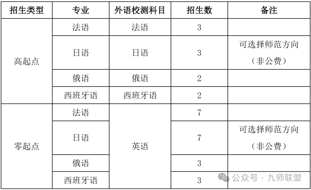 注:零起点一般指高中外语语种为英语的考生,高起点指考生高考语种为我校相应招生语言专业的考生。