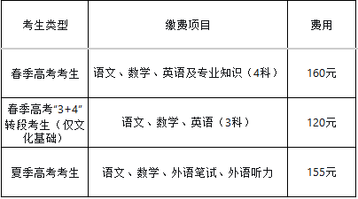 *注:“3+4”转段兼报春季高考的考生,收费标准与春季高考普通考生相同。等级考试科目无需缴费。*